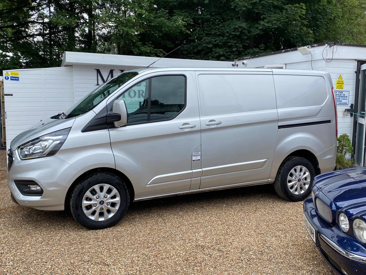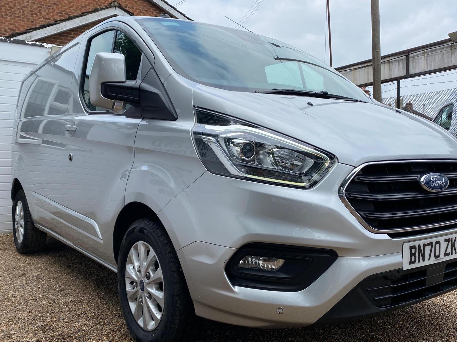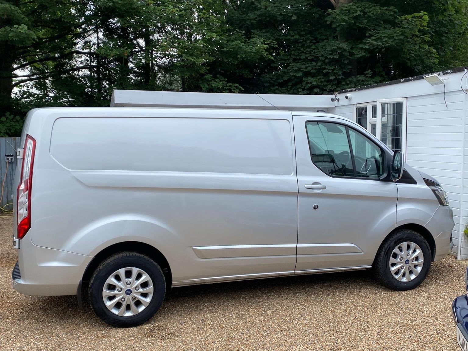 Ford Transit Custom finished in metallic silver with limited package that includes paint matched bumpers, door handles & mirrors, upgraded & heated seats, front + rear sensors, air conditioning, folding mirrors, alloy wheels and many more!