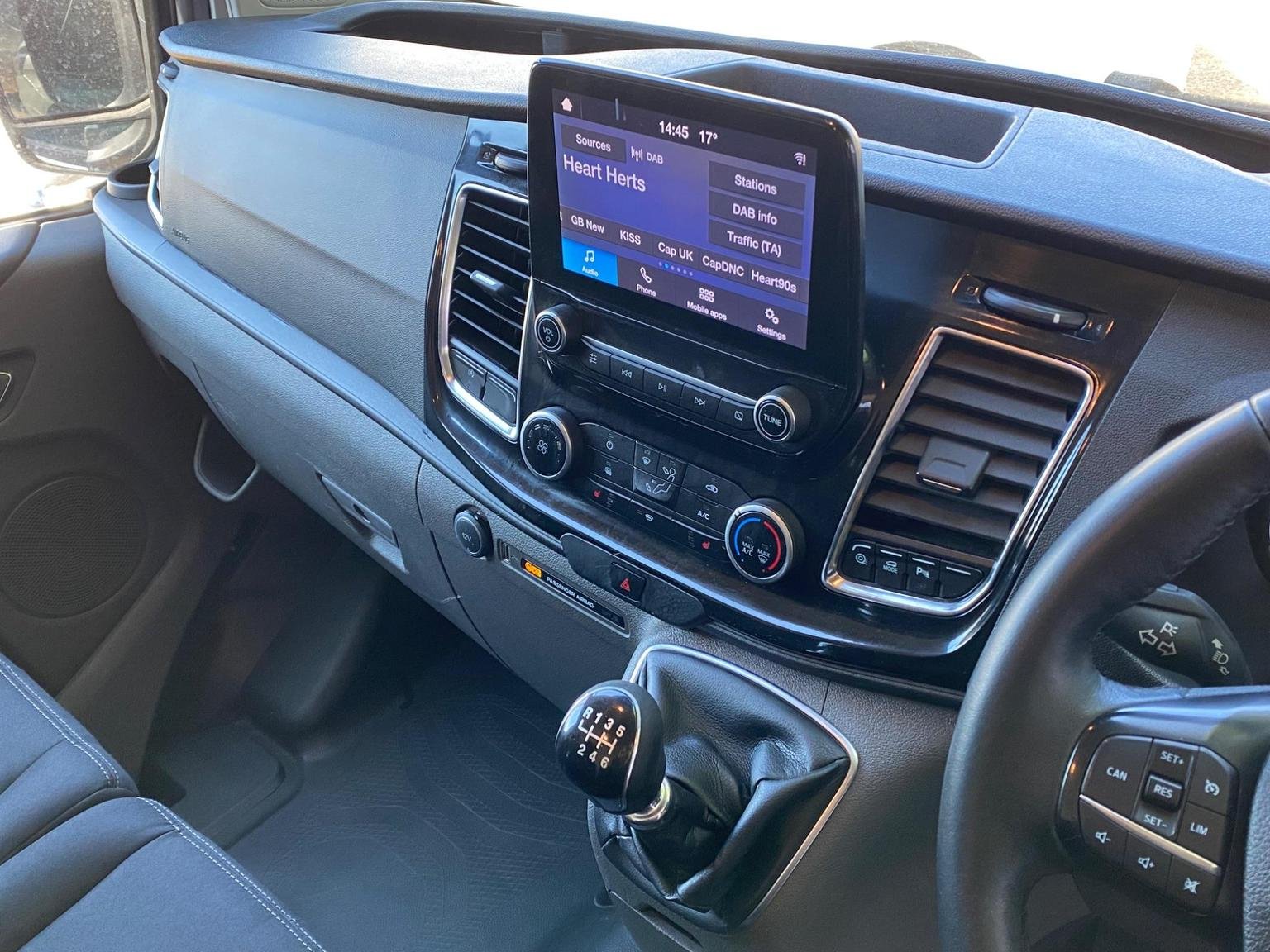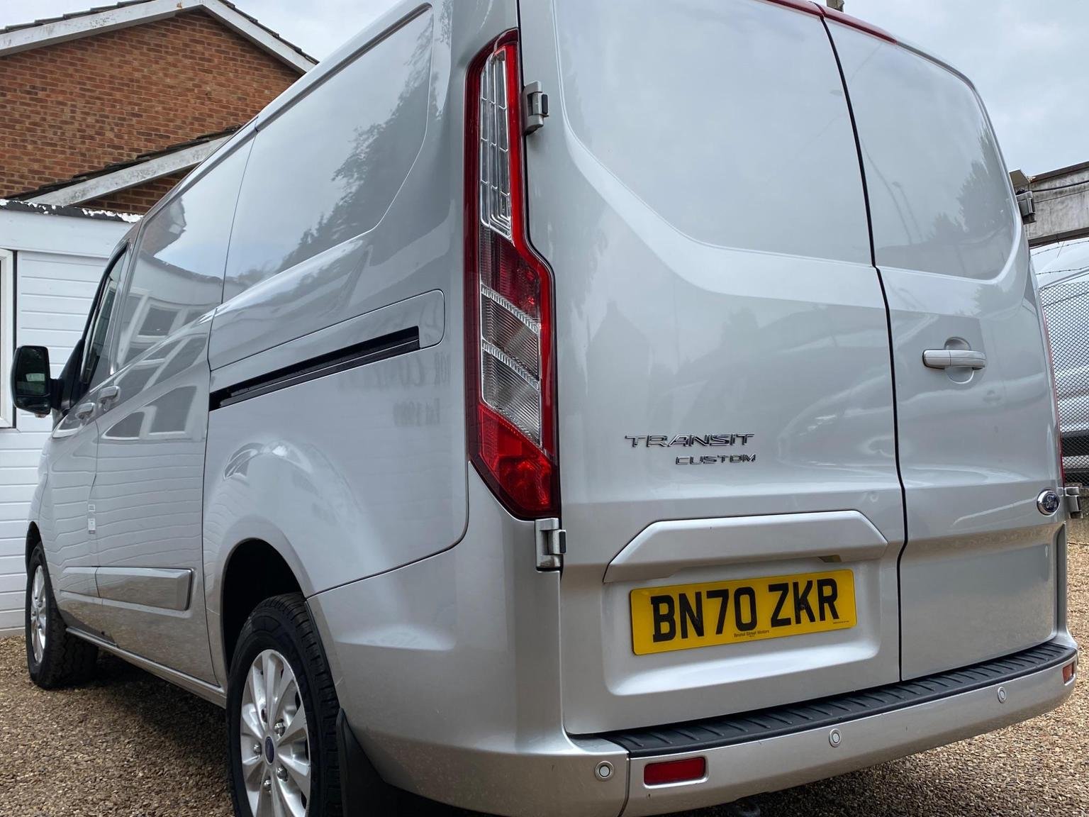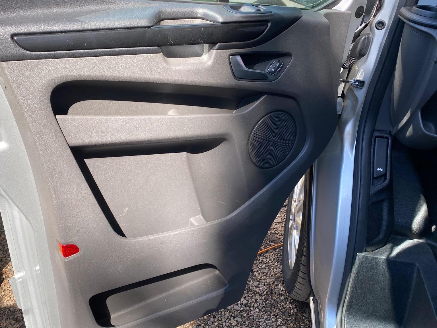 Ford Transit Custom finished in metallic silver with limited package that includes paint matched bumpers, door handles & mirrors, upgraded & heated seats, front + rear sensors, air conditioning, folding mirrors, alloy wheels and many more!